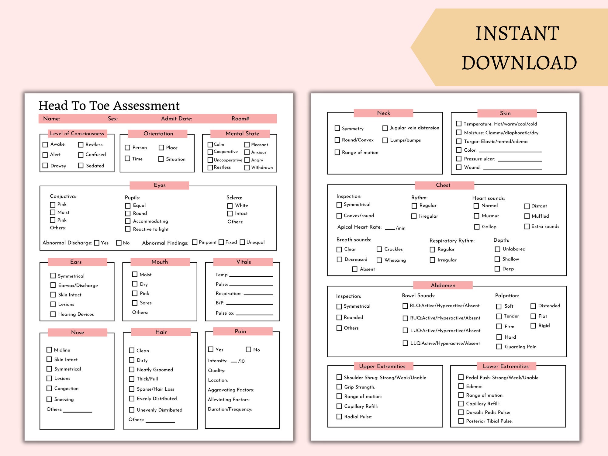 Head to Toe Assessment Template Nursing Checklist Bundle Nursing