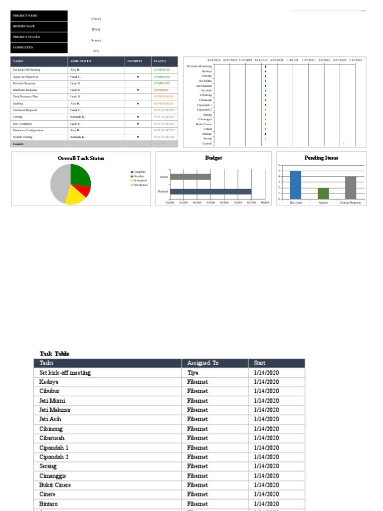Overall Task Status Budget Pending Items: Project Name Report Date