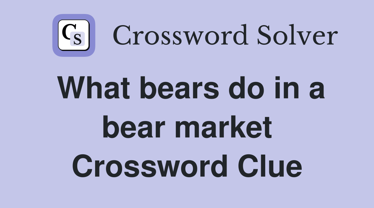 What bears do in a bear market Crossword Clue Answers Crossword Solver