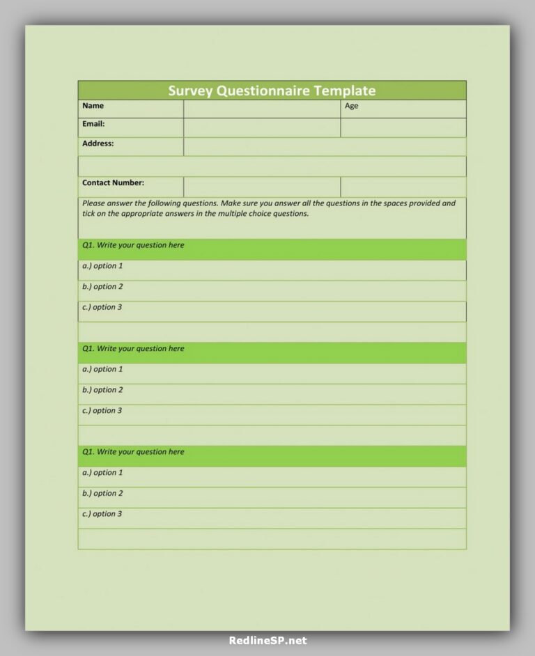 35 Best Printable Questionnaire Template RedlineSP