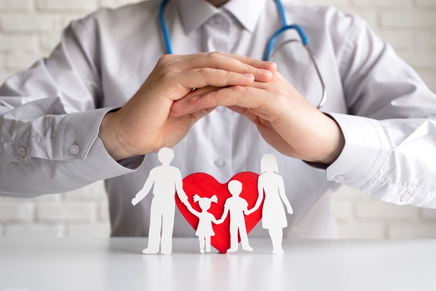 Doctor Holding Family Paper Cutout with Heart Premium AI generated image