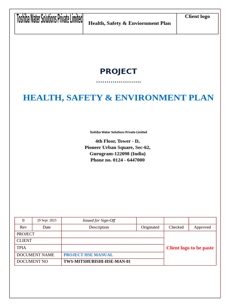 HSE Plan Sample docx COMPANY NAME GOES HERE PROJECT SPECIFIC HEALTH