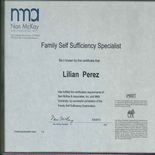 Nan McKay Family Self Sufficinecy Specialist Certificate PDF