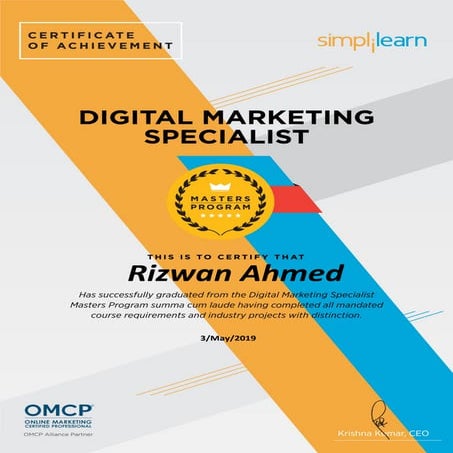 Digital Marketing Specialist Certificate for Rizwan Ahmed PDF