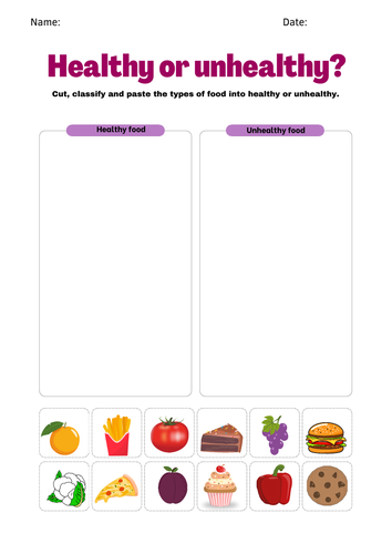 Healthy and Unhealthy Foods Worksheet for Kids Sorting Activity Sort