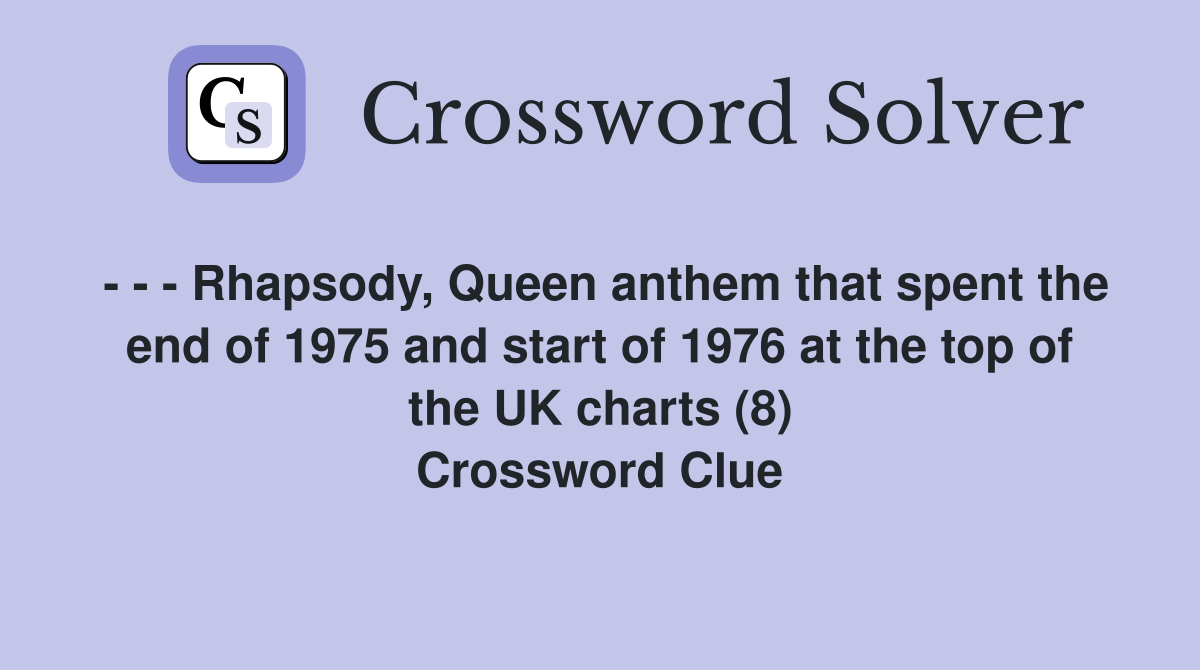 Rhapsody Queen anthem that spent the end of 1975 and start of 1976 at