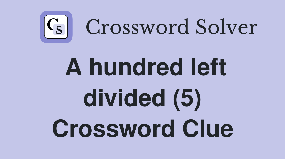 A hundred left divided (5) Crossword Clue Answers Crossword Solver
