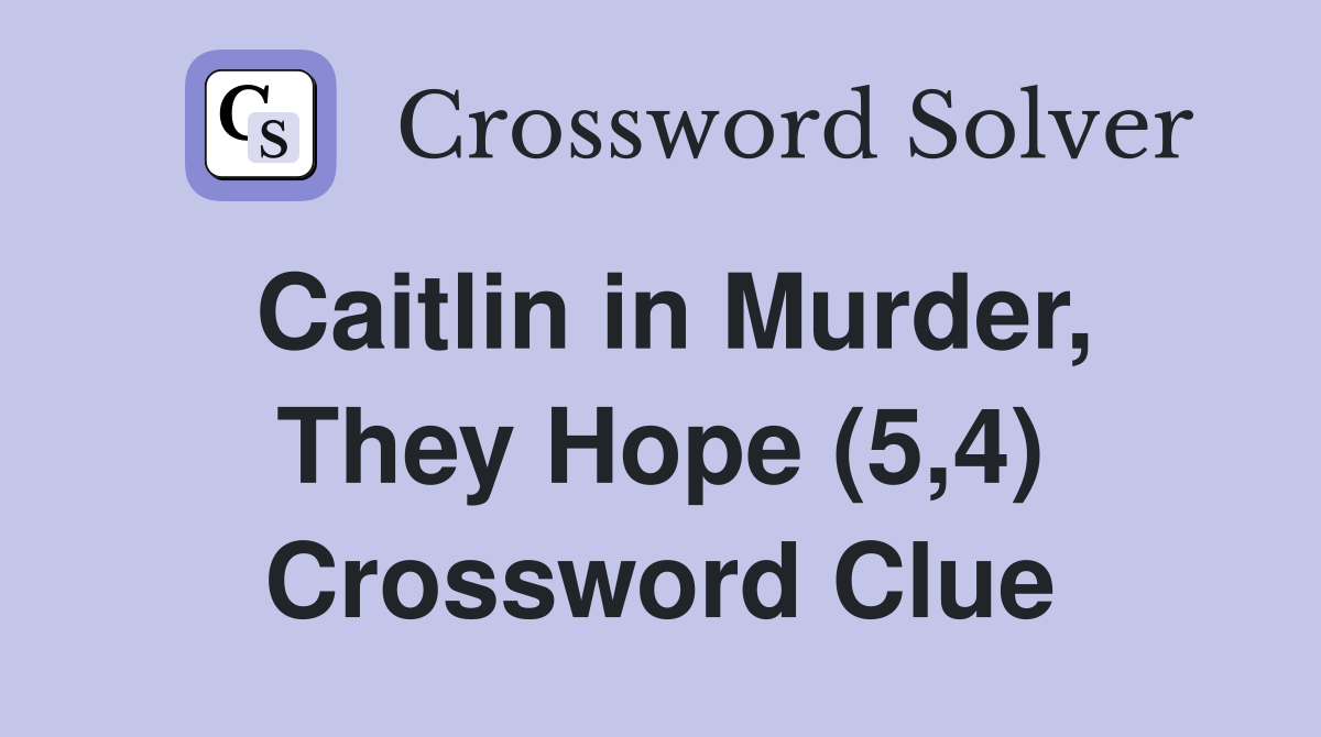 Caitlin in Murder They Hope (5 4) Crossword Clue Answers Crossword