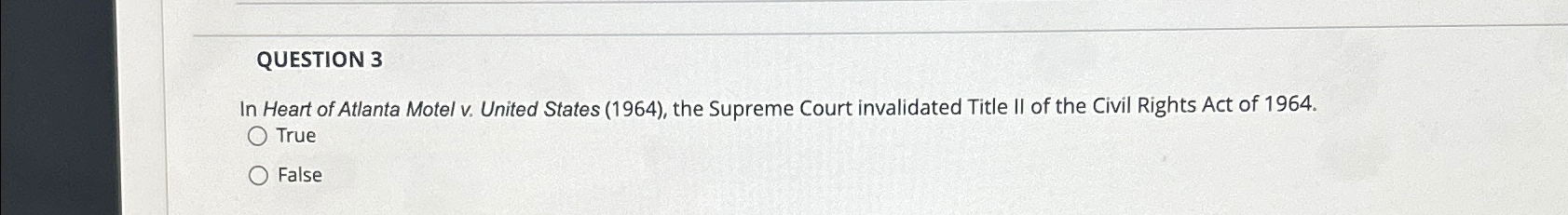 Solved QUESTION 3In Heart of Atlanta Motel v United States Chegg com
