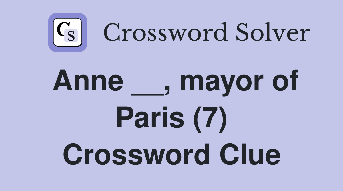 Anne mayor of Paris (7) Crossword Clue Answers Crossword Solver
