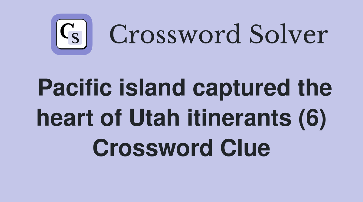 Pacific island captured the heart of Utah itinerants (6) Crossword
