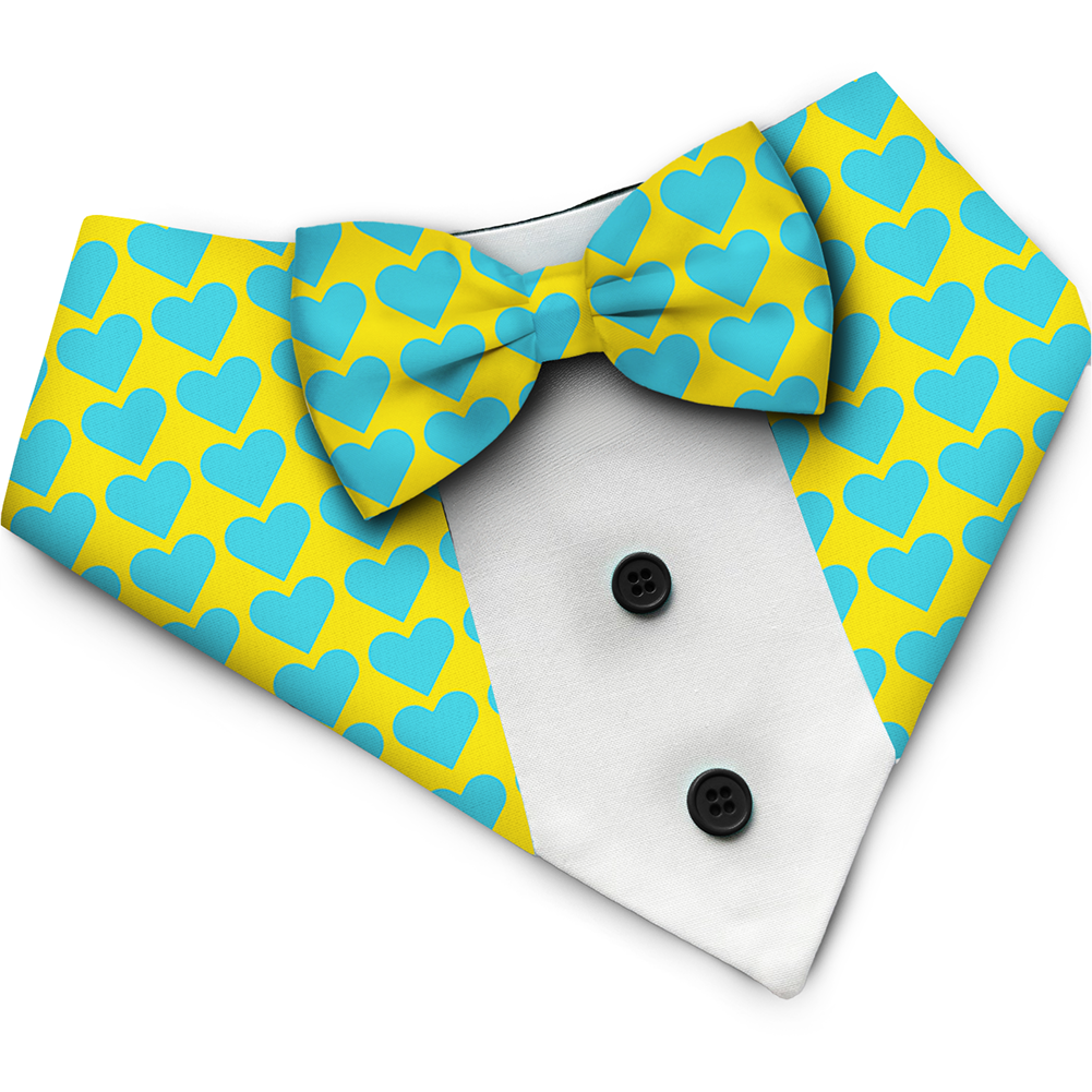 PawsIndia Heart Pattern Tuxedo Bandana with Matching Bow for Dogs and