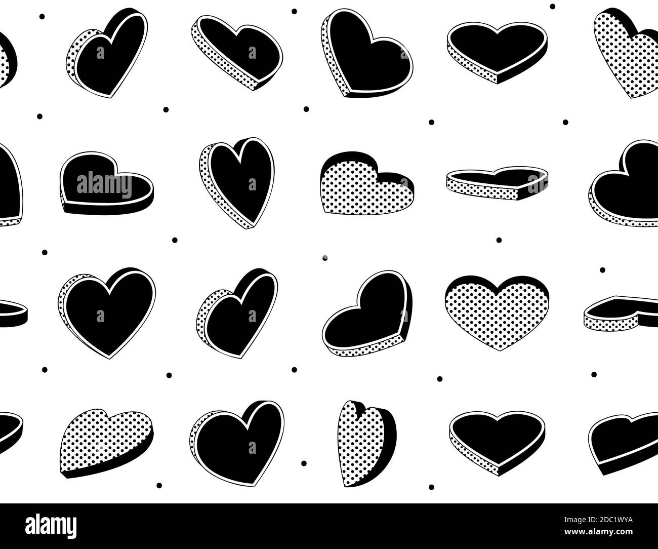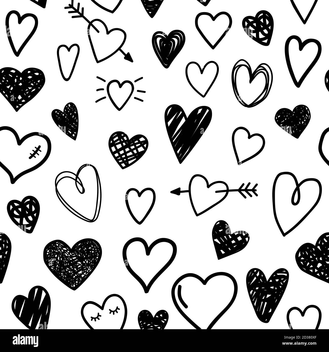 Black sketch hearts pattern Beautiful love seamless pattern with heart