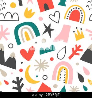 Heart HandDrawn Simple Seamless Pattern Soft Color Stock Vector Image