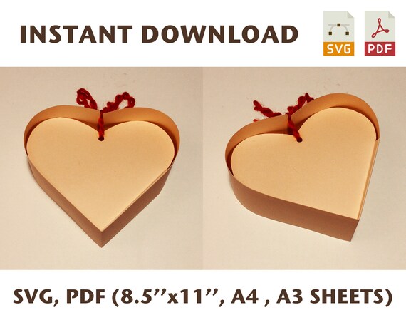 Valentine #39 s Day DIY Heart Paper Box Template PDF for hand cutting SVG
