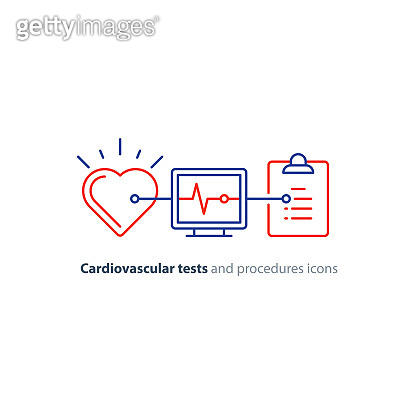 Heart test line icon electrocardiogram monitor logo cardiology