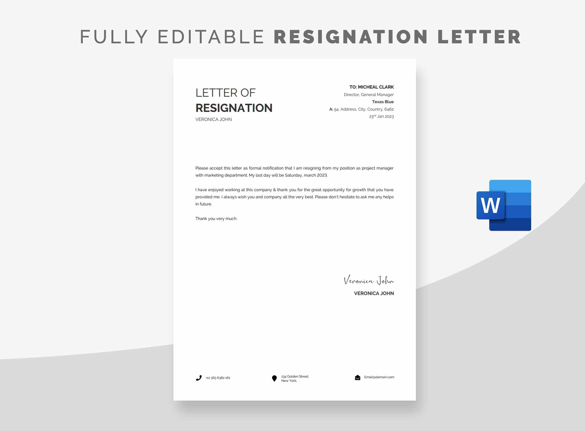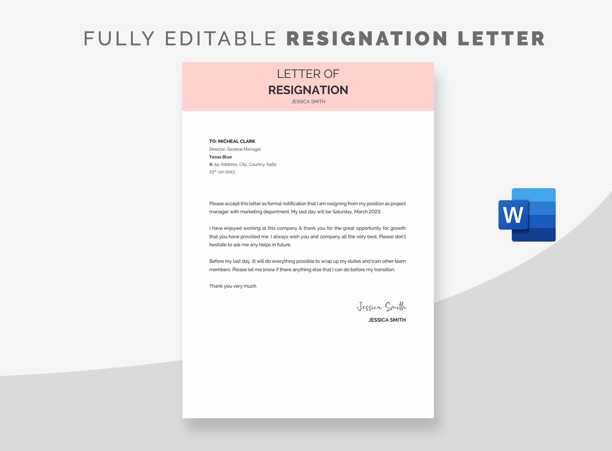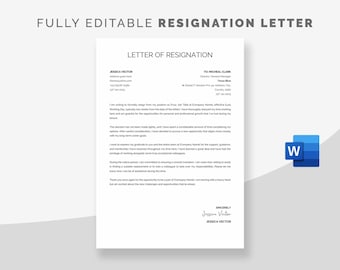 Resignation Letter Template Notice Letter Template for Word Etsy