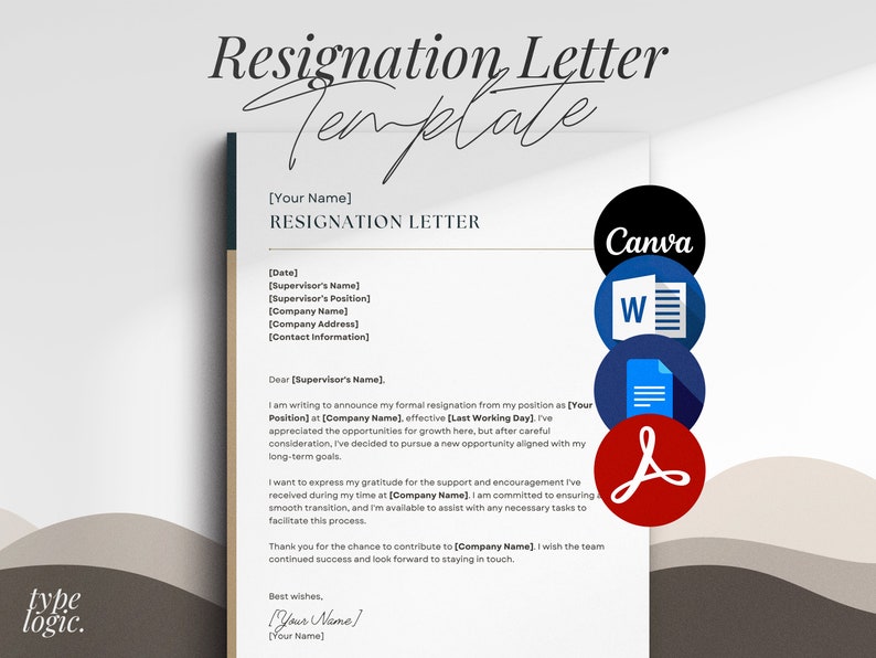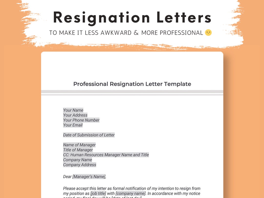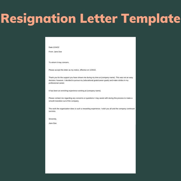 Resignation Letter Template Resignation Letter Resignation Etsy