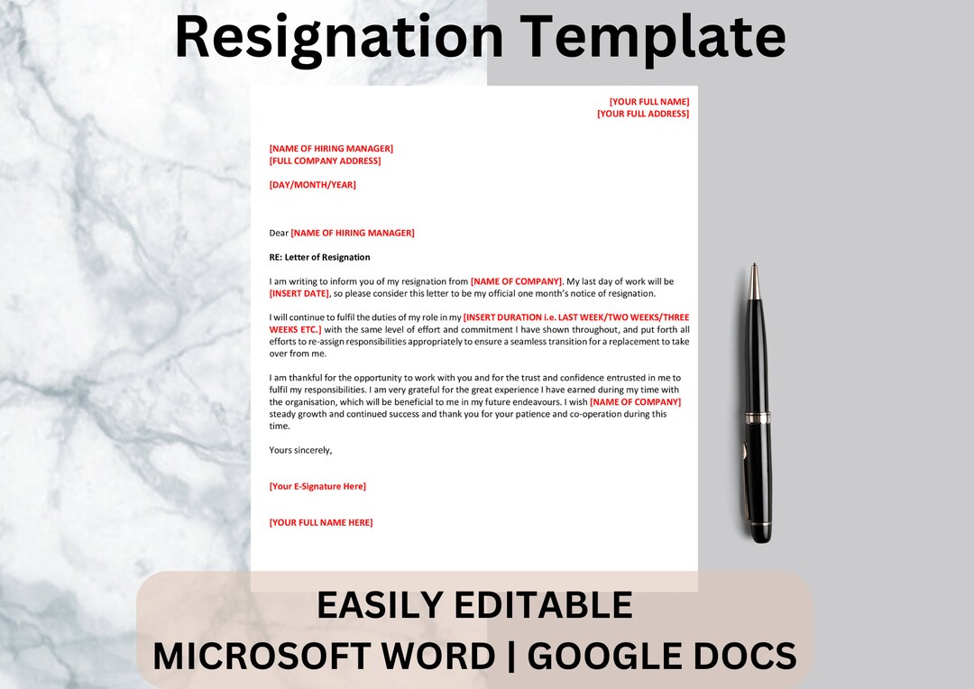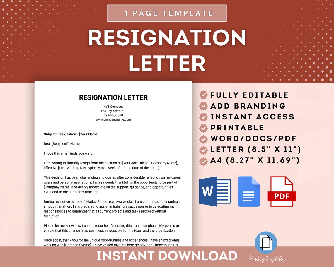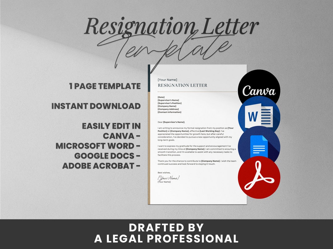 Resignation Letter Resignation Letter With Sample Writing Etsy Canada