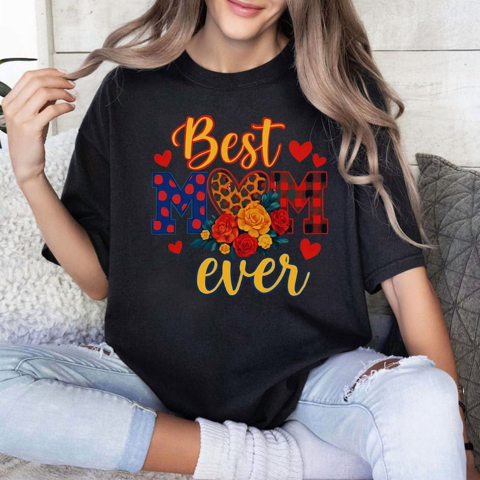 Best Mom Ever Floral Hearts Design T shirt Black Walmart com