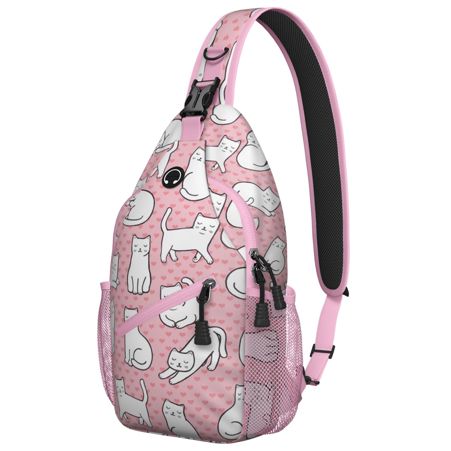 Cat and Hearts Pattern Sling Backpack Cute Pet Print Crossbody Bag for