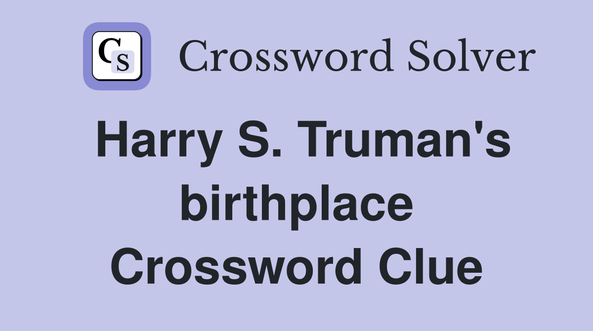 Harry S Truman #39 s birthplace Crossword Clue Answers Crossword Solver
