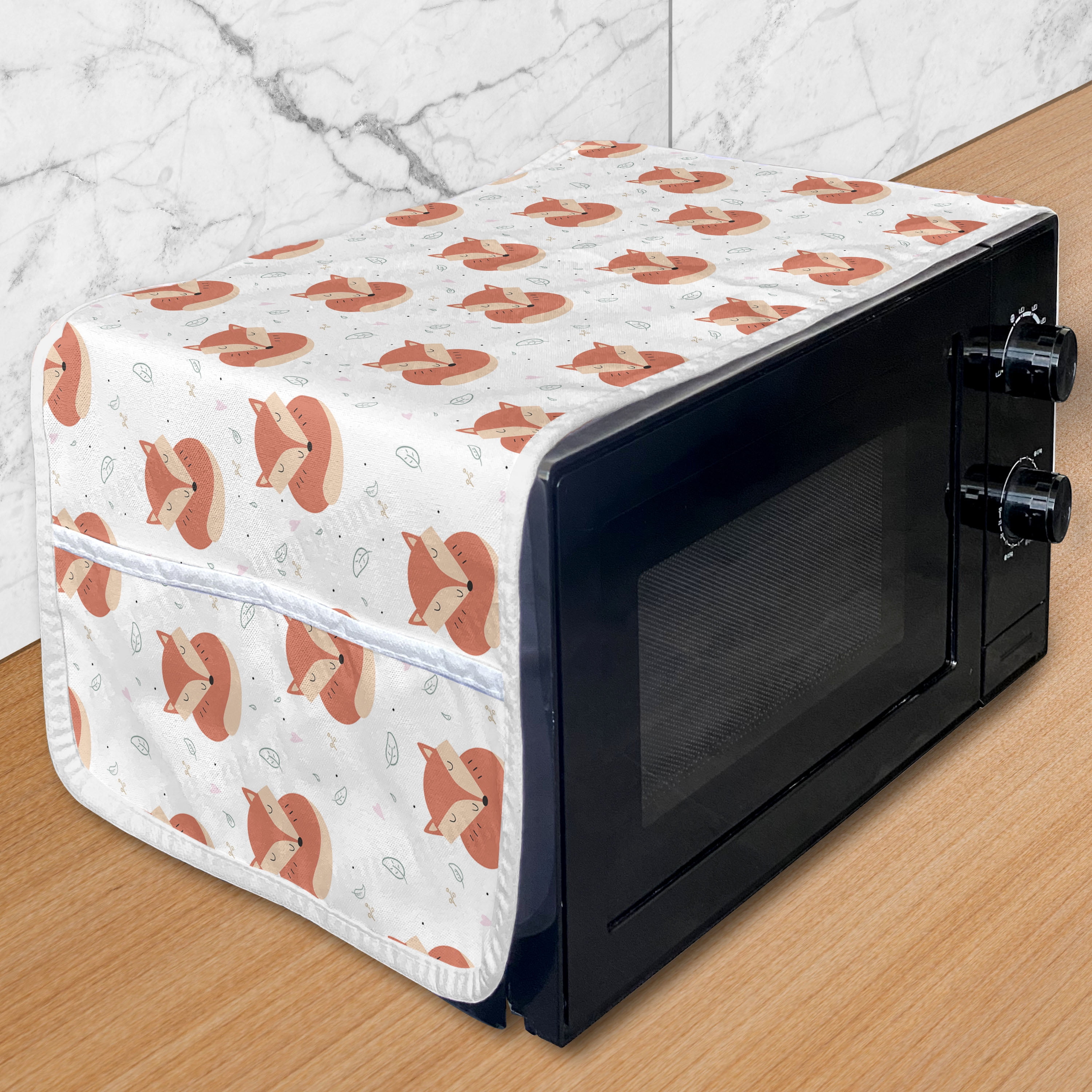 Fox Microwave Oven Cover Sleeping Animals Pattern on Heats and Leaves