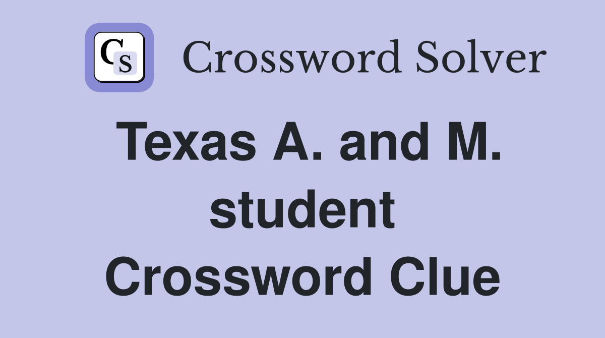 Texas A and M student Crossword Clue Answers Crossword Solver
