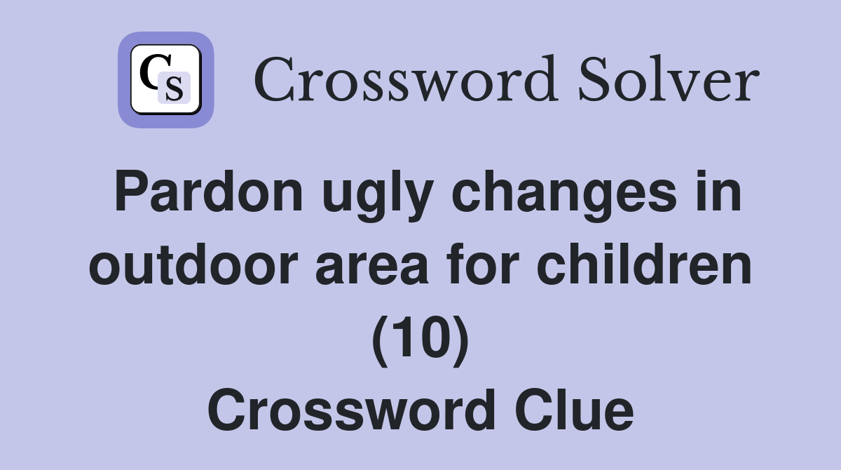 Pardon ugly changes in outdoor area for children (10) Crossword Clue