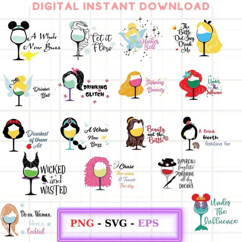 Princess Wine Glass SVG Princess Wine Glass Svg Princesses Svg