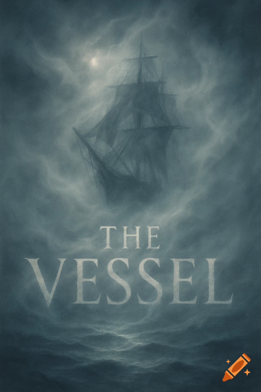A dark vintage horror movie poster featuring a tugboat on a stormy sea