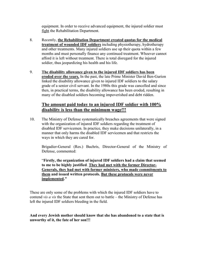 IDF veterans protest 2012 Letter of explanation heb eng PDF