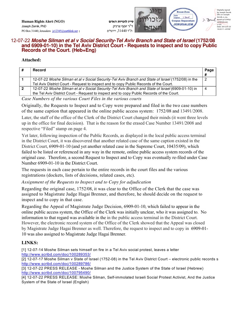 And 6909 01 10) in The Tel Aviv District Court Requests To Inspect