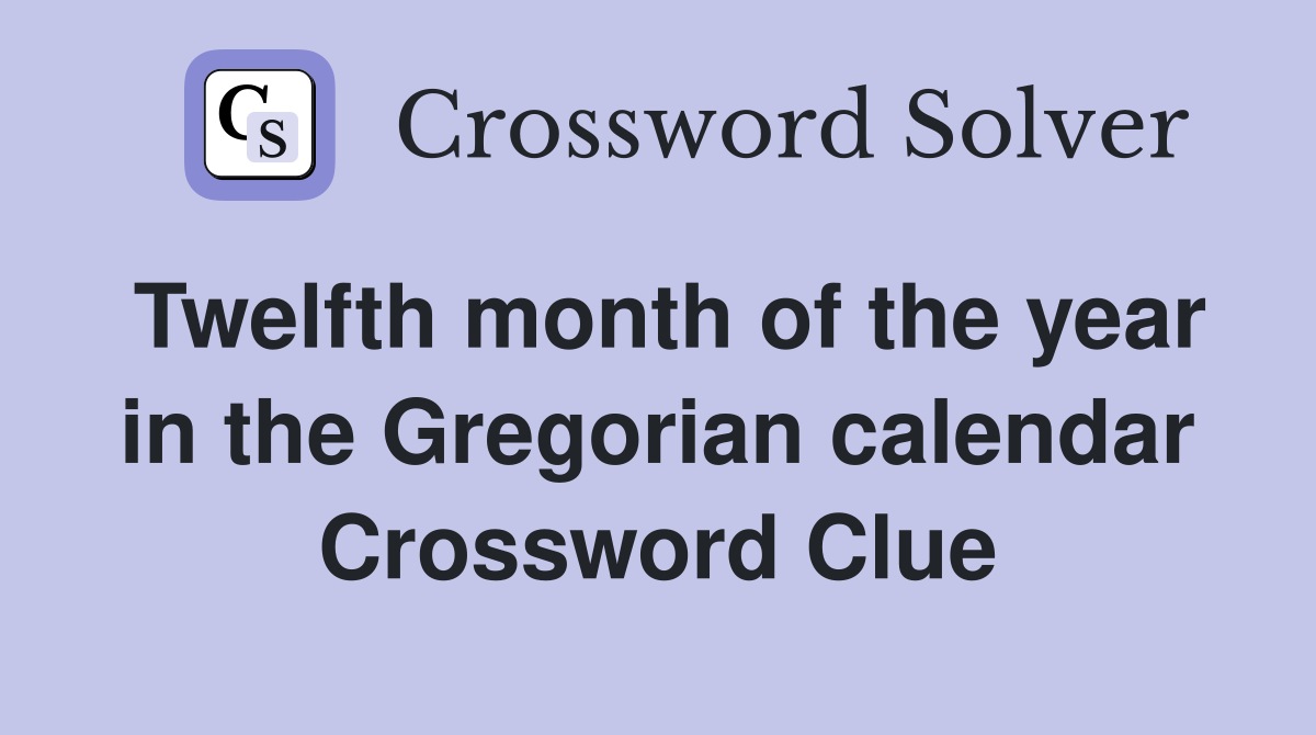 Twelfth month of the year in the Gregorian calendar Crossword Clue