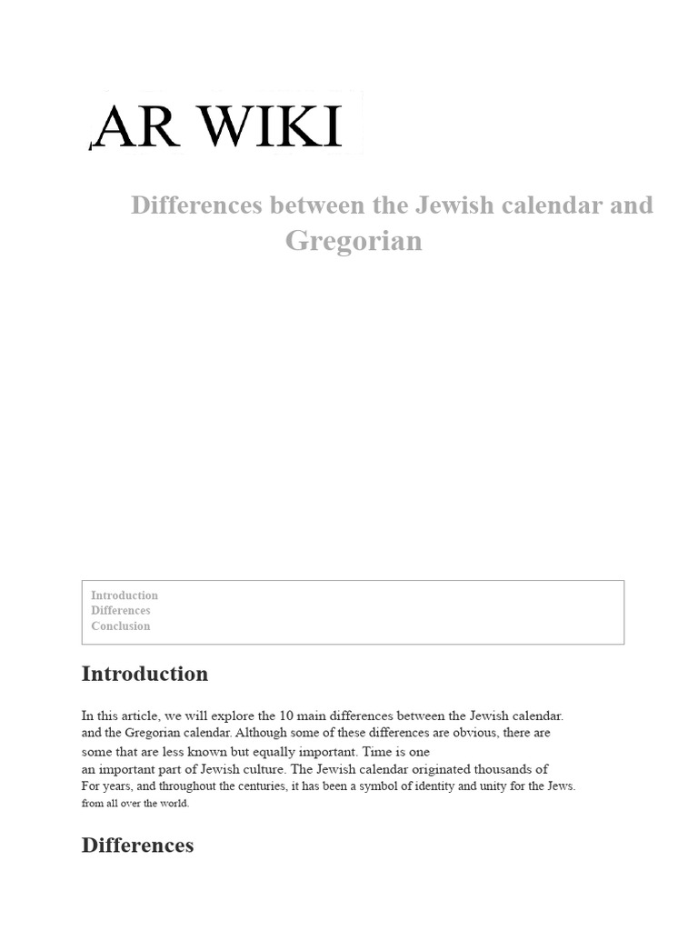 Differences Between The Jewish Calendar and The Gregorian Calendar
