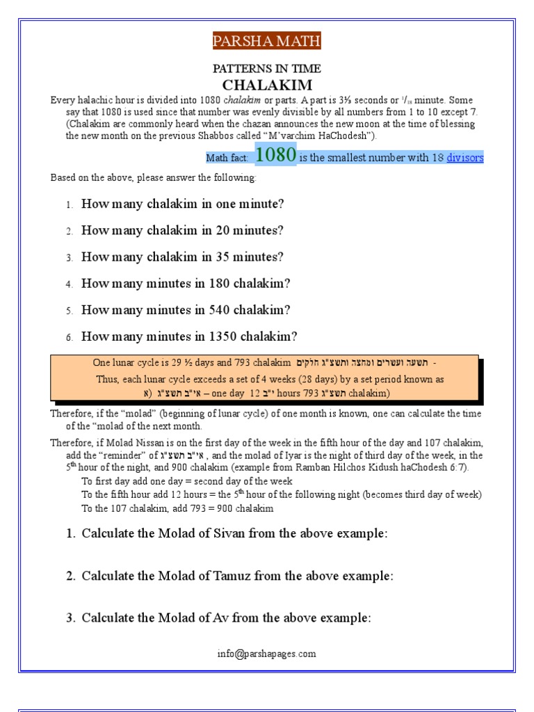 Chalakim Parsha Math Download Free PDF Hebrew Calendar