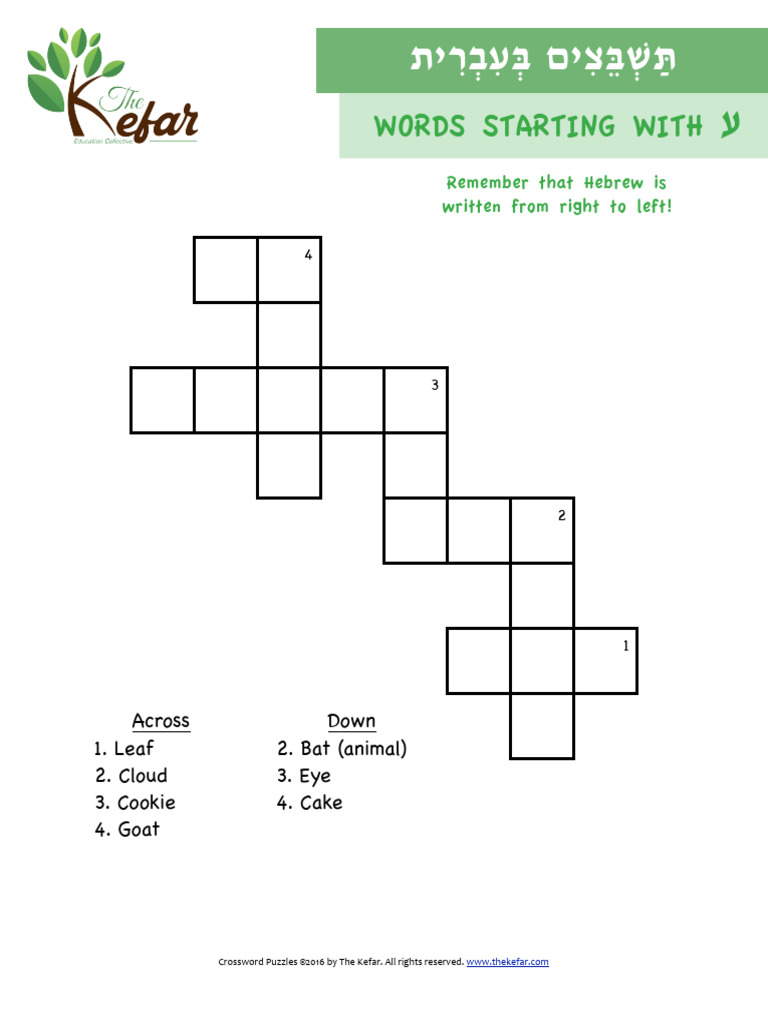 Hebrew Letter Crossword Free Printable Crosswords