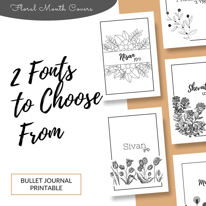 HEBREW Journal Template Printable HEBREW Monthly Cover Pages Floral