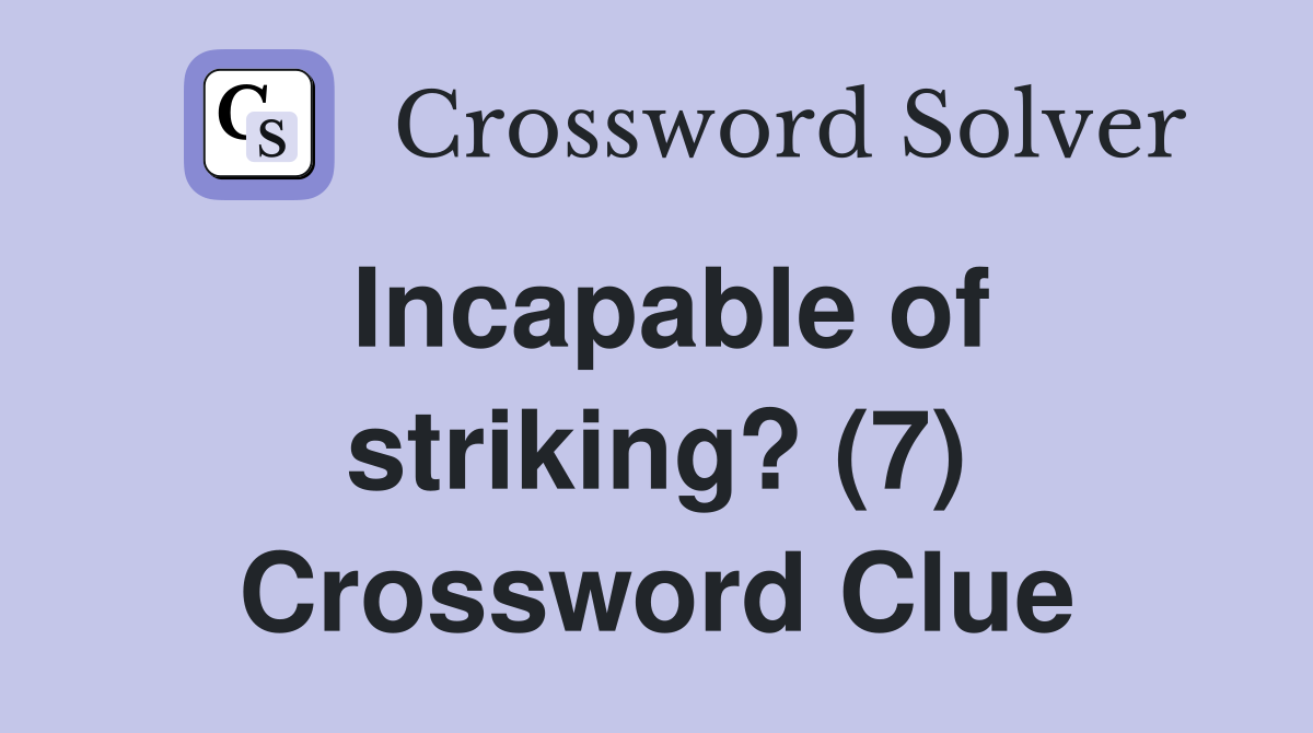 Incapable of striking? (7) Crossword Clue Answers Crossword Solver