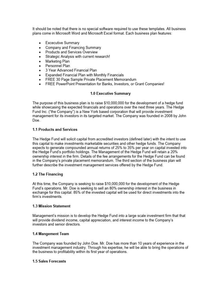 Hedge Fund Business Plan Download Free PDF Hedge Fund Investing
