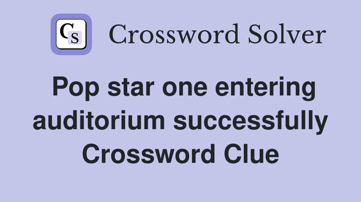 Pop star one entering auditorium successfully Crossword Clue Answers
