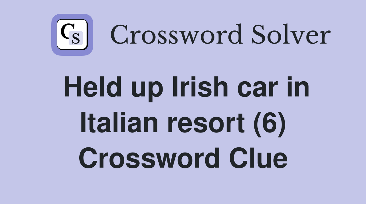 Held up Irish car in Italian resort (6) Crossword Clue Answers