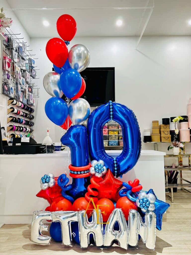 Number 10 Design With Heliums And Flowers (Design Code: N10 2) A E