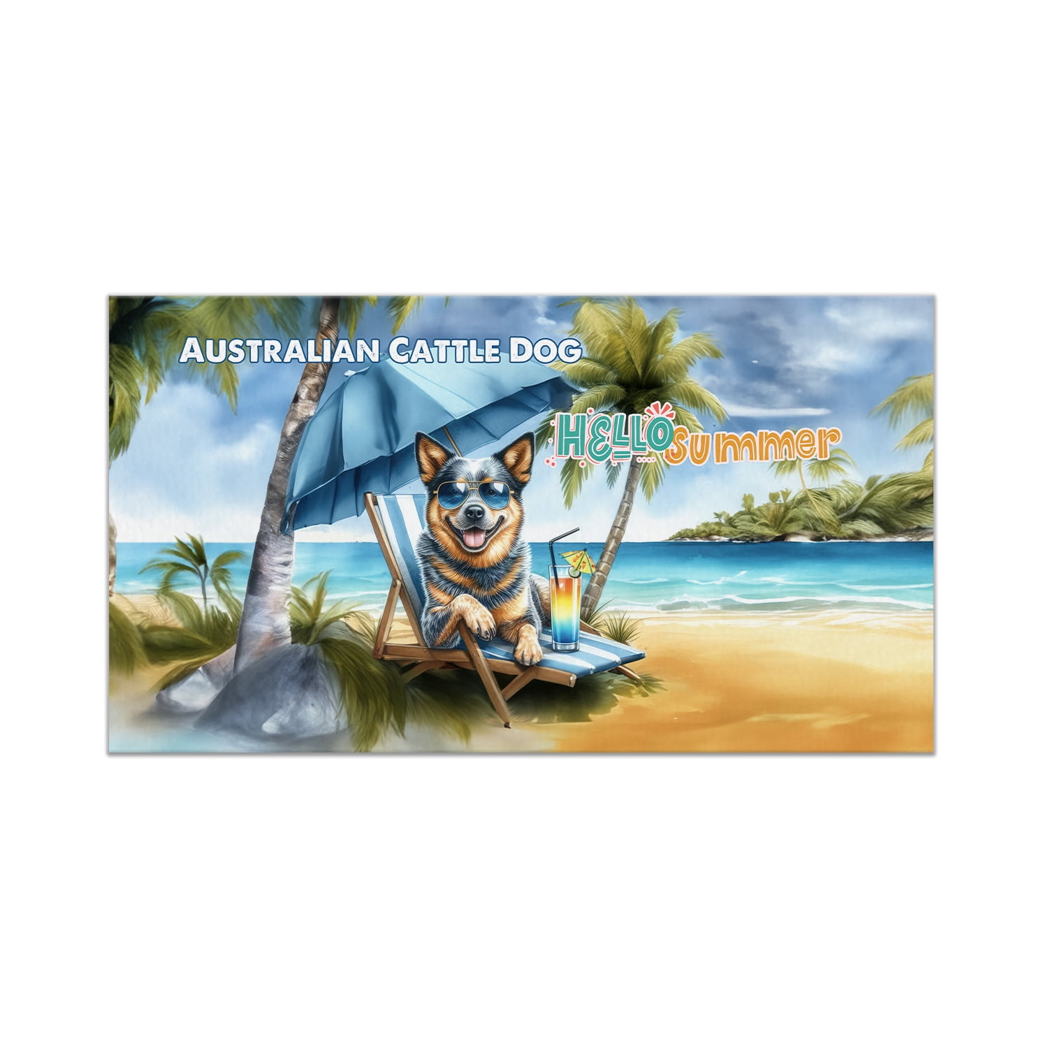 Australian Cattle Dog Hello Summer Beach Theme with Sunglasses and