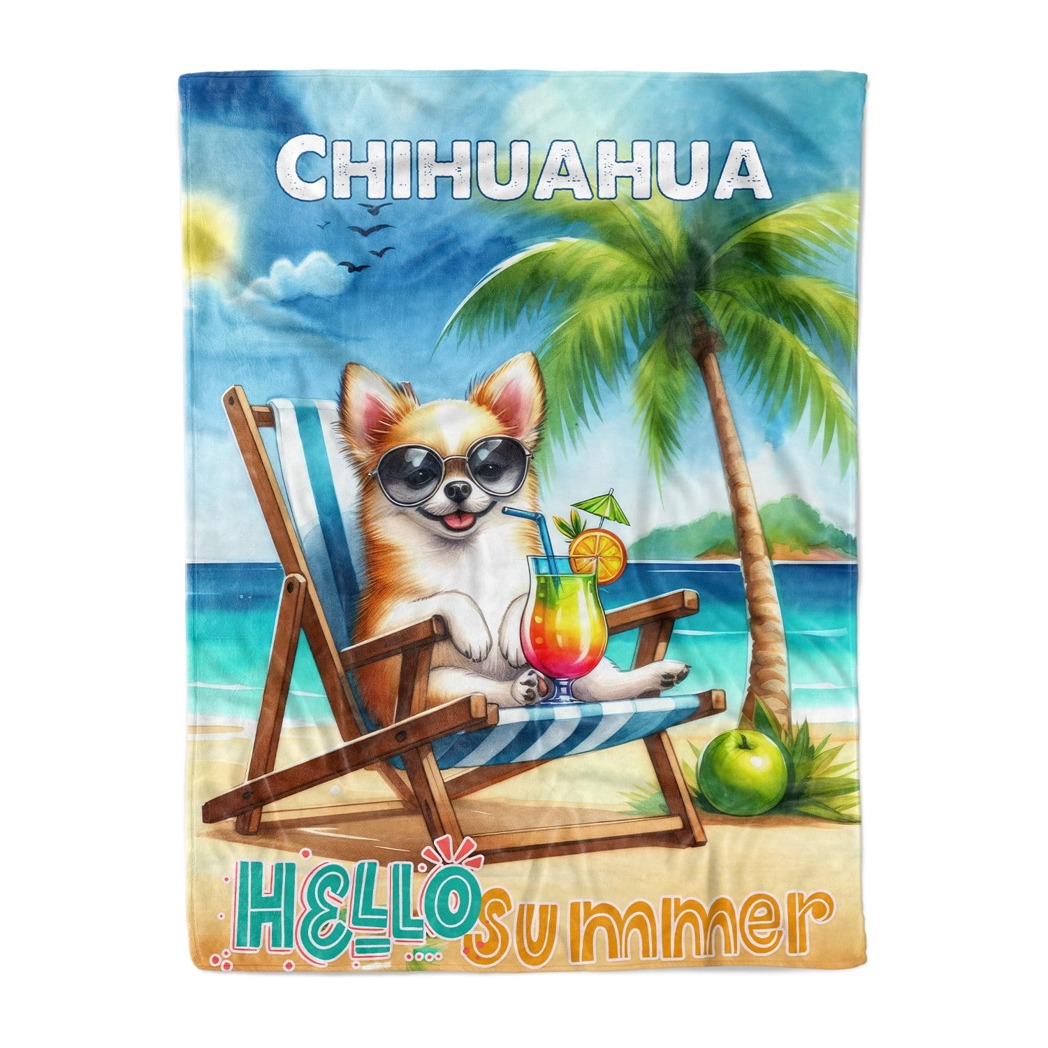 Chihuahua Hello Summer Beach Theme with Sunglasses and Tropical
