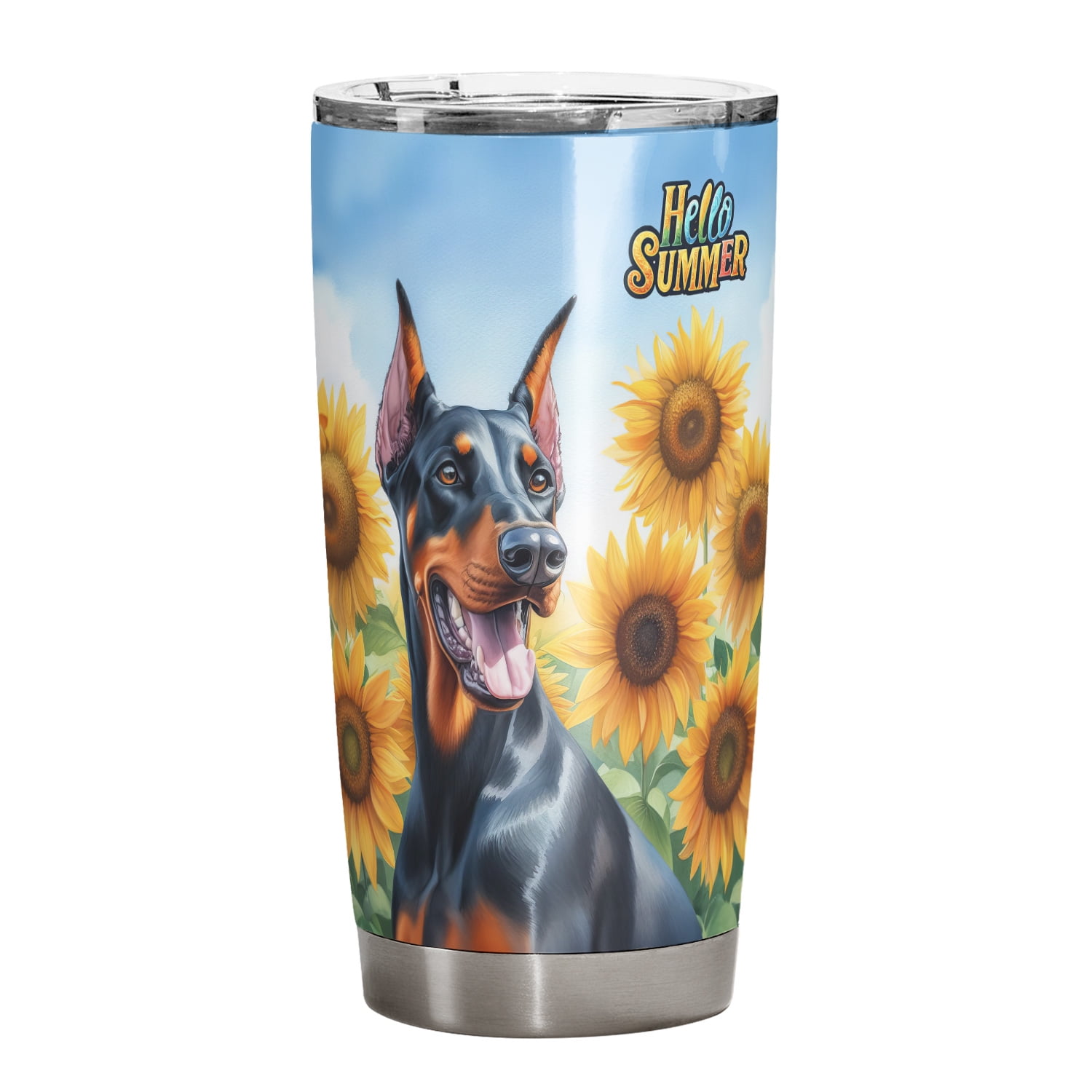 Doberman Pinscher Hello Summer Sunshine Sunflowers Spring Retro Vintage