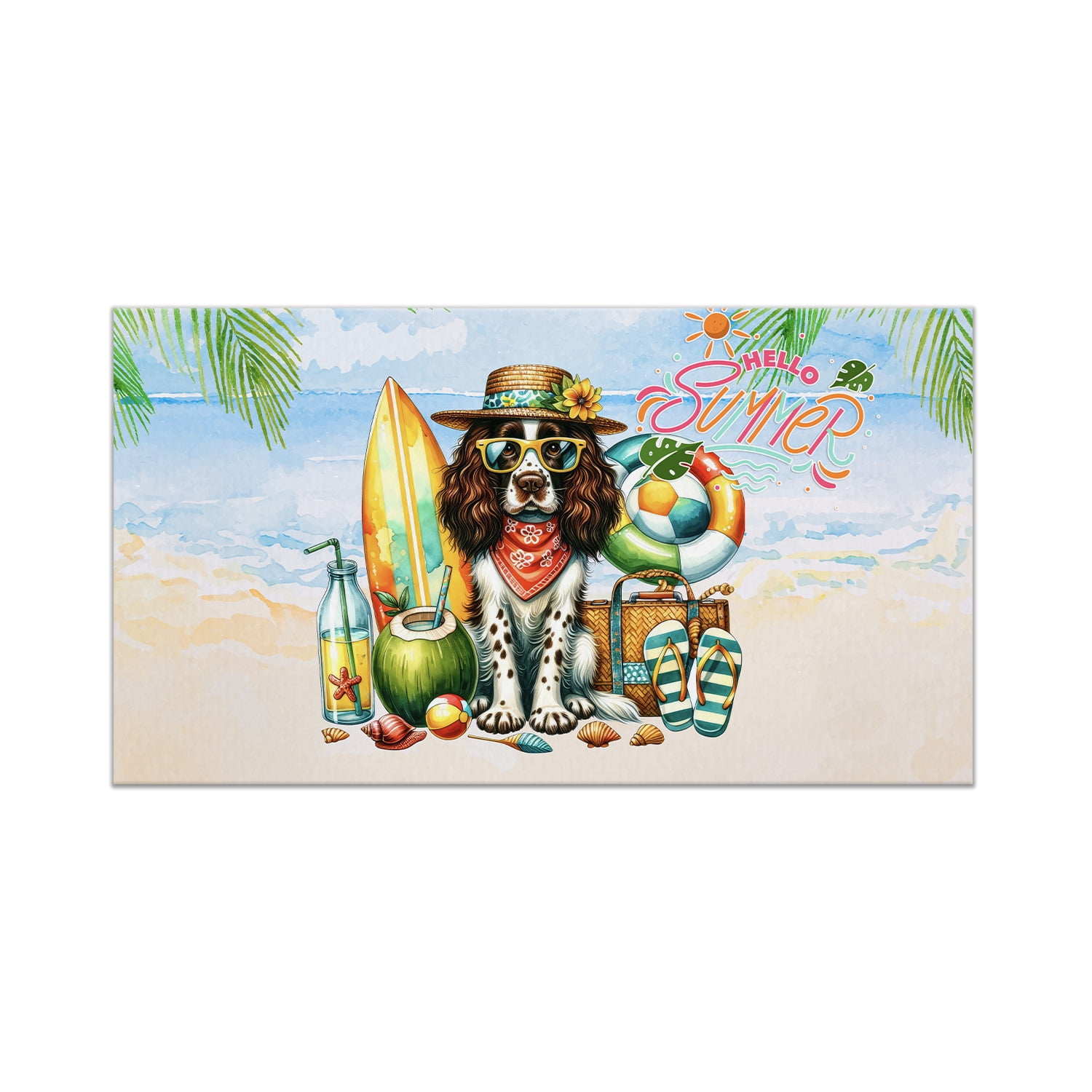 English Springer Spaniel Hello Summer with Sunglasses and Surfboard