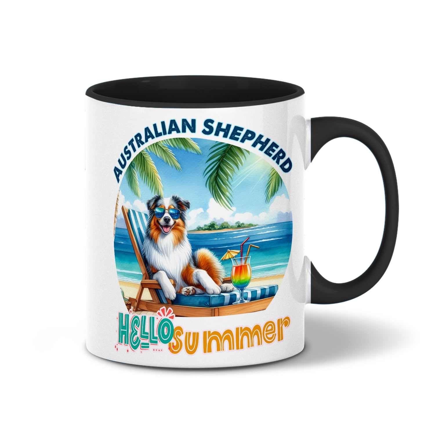 Australian Shepherd Hello Summer Beach Theme with Sunglasses and