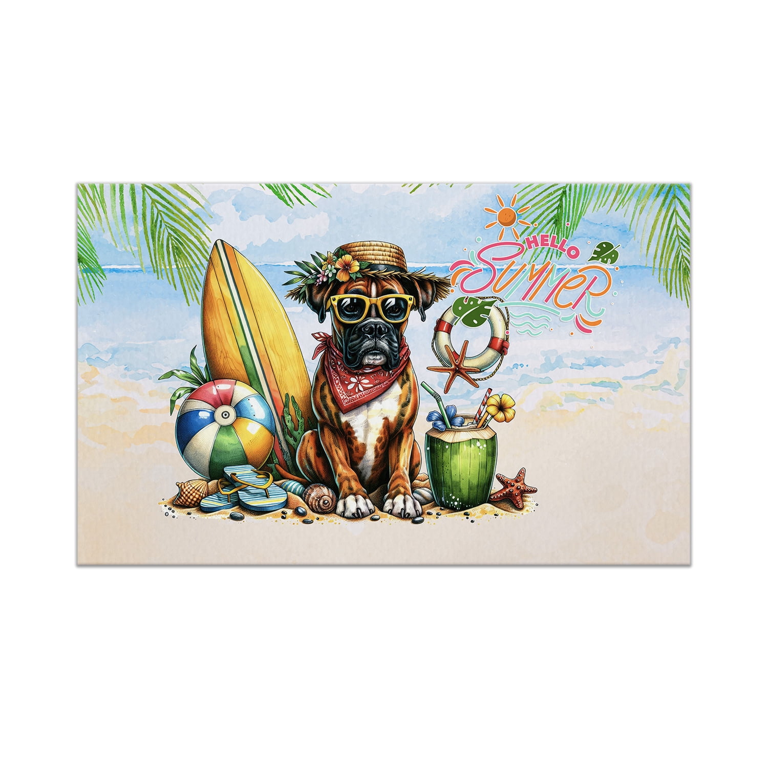 Boxer Hello Summer with Sunglasses and Surfboard Tropical Vibes Doormat
