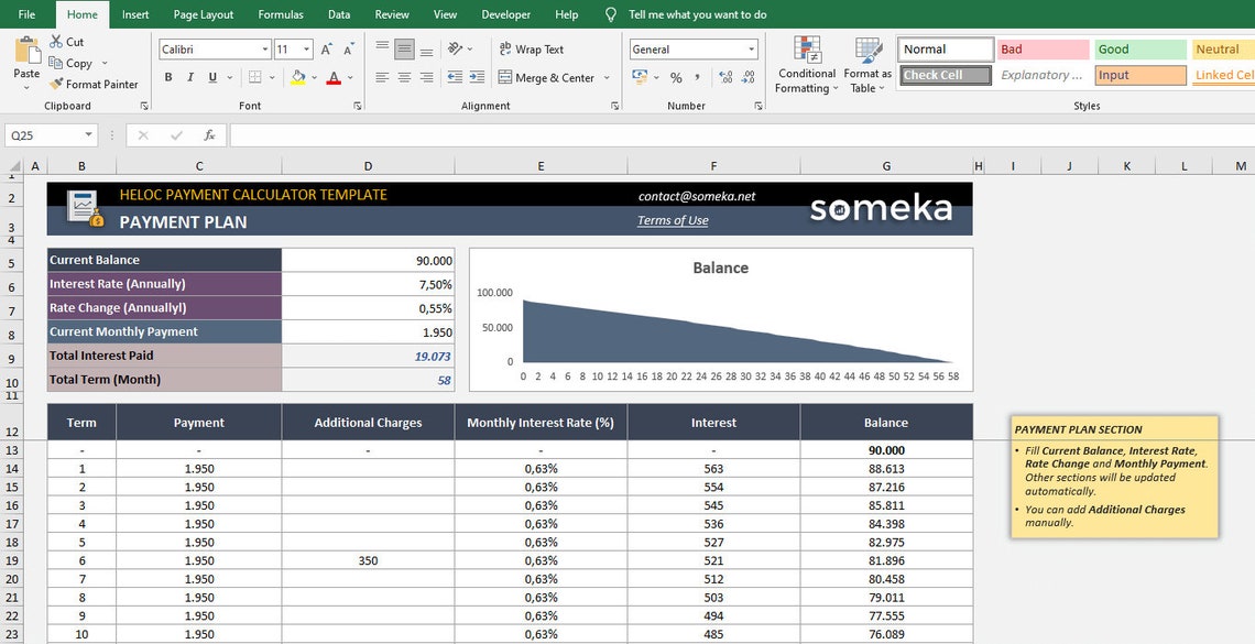 HELOC Payment Calculator: Excel Template With Amortization Schedule Etsy